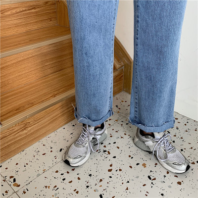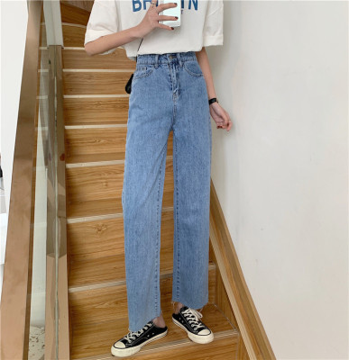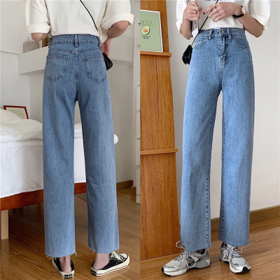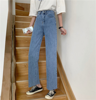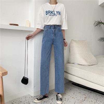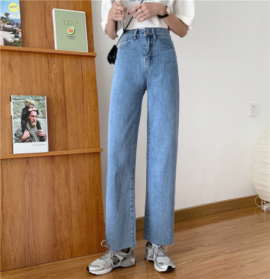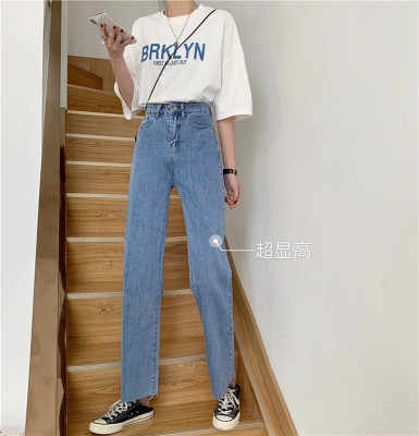 Real shot High Waist Wide Leg Jeans Women's spring wear new style slim loose drooping straight pants