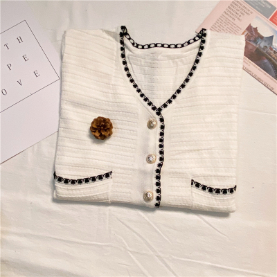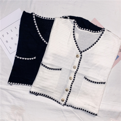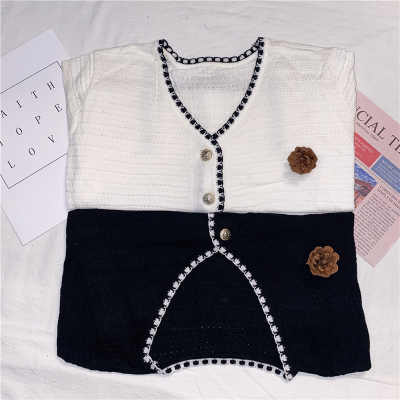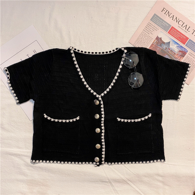 Real photo 2021 summer new V-neck short sleeve female celebrity short knitted cardigan thin coat Knitted Top