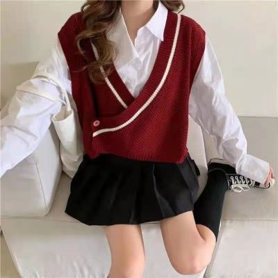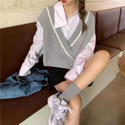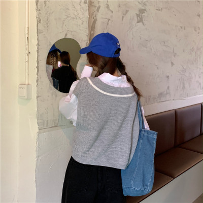 Net red vest spring new collar short knitted sweater vest shoulder women's Vest Jacket fashion