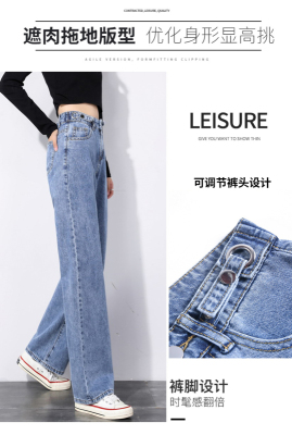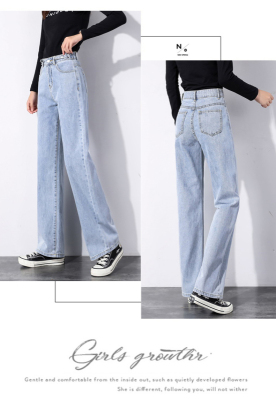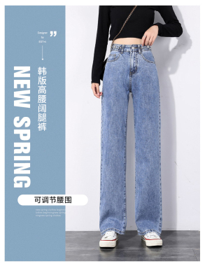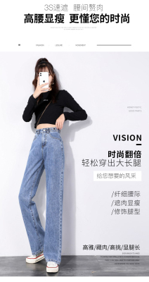 High Waist Wide Leg Pants Jeans Women's new year summer thin straight loose draping pants