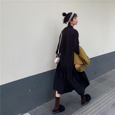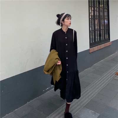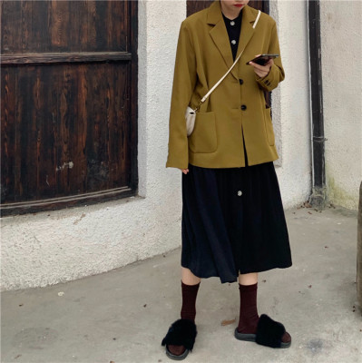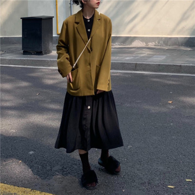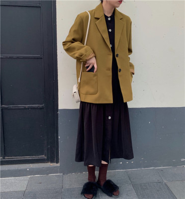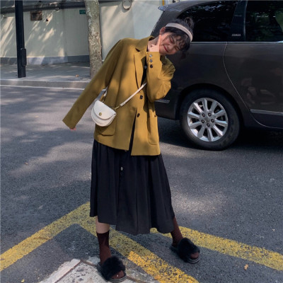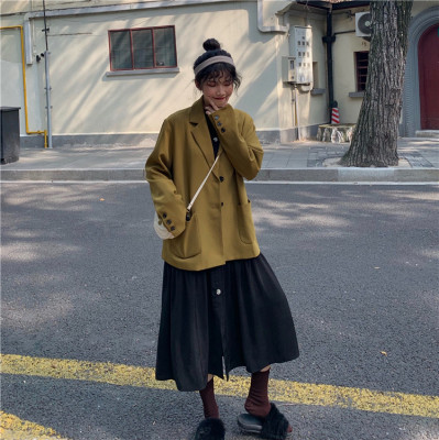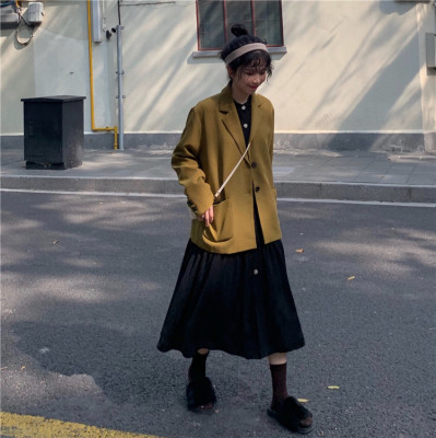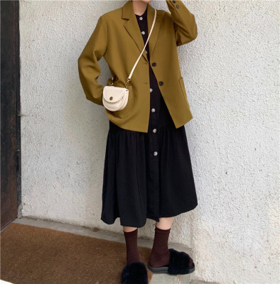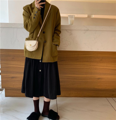 實拍 實價 黑色赫本風顯瘦中長款長袖連衣裙+槍駁雙排扣西裝外套