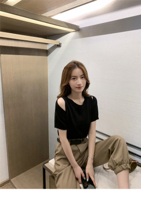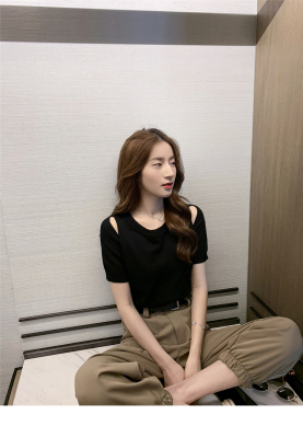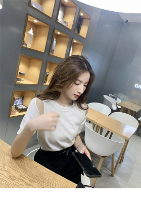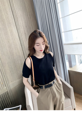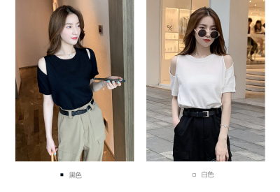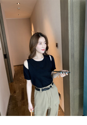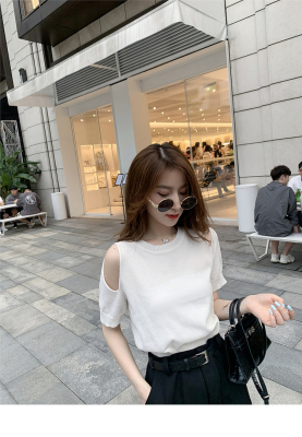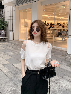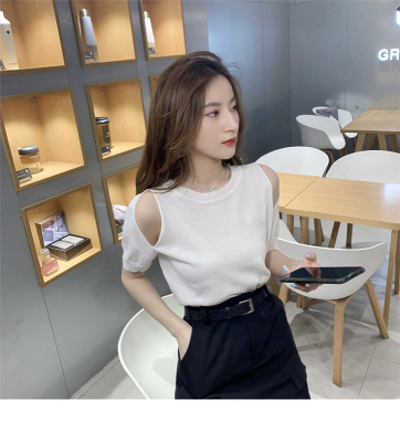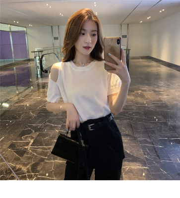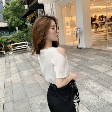 Summer new French gentle wind short off shoulder T-shirt women's white foreign style age reducing net red top