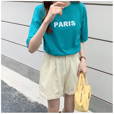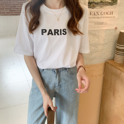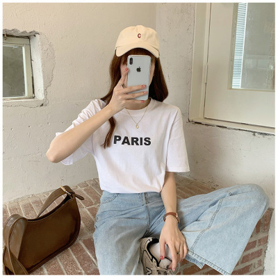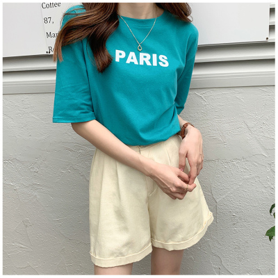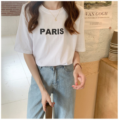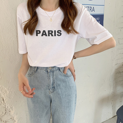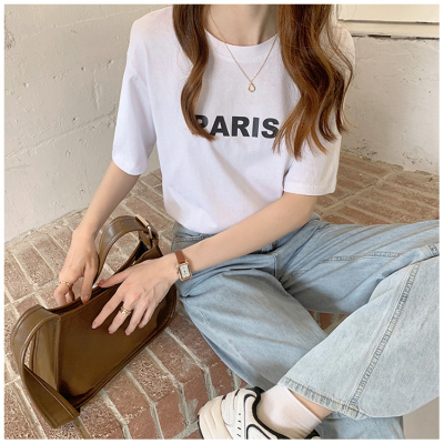 Real shot cotton student short sleeve t-shirt female pure cotton loose Student Korean half sleeve top