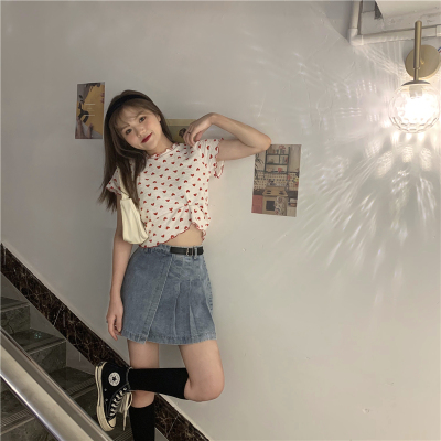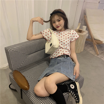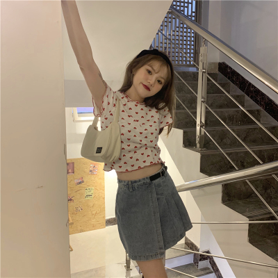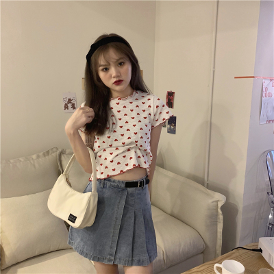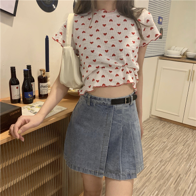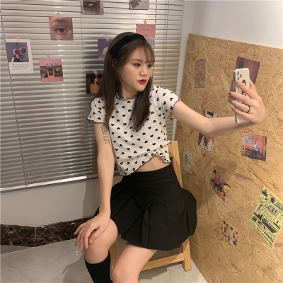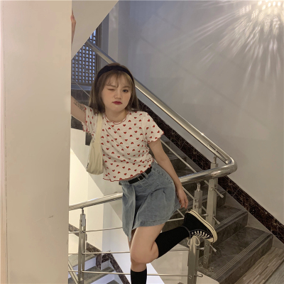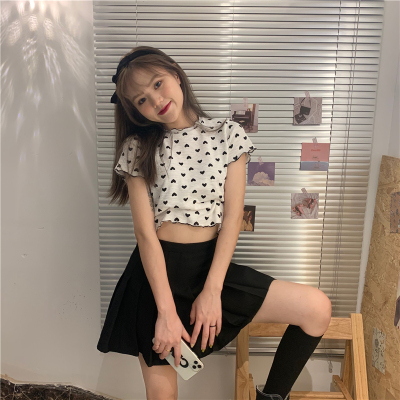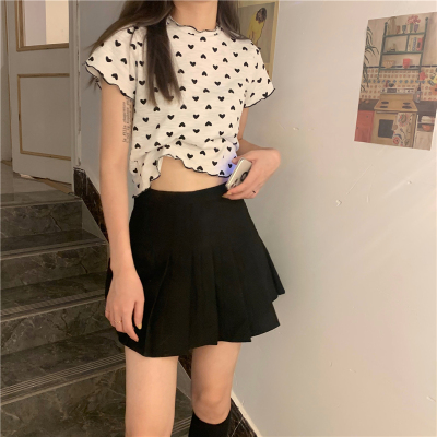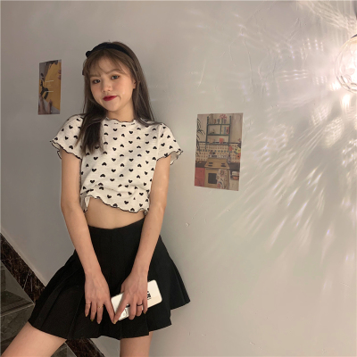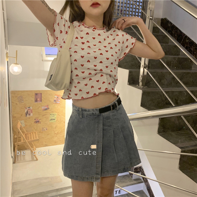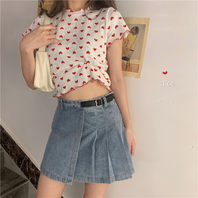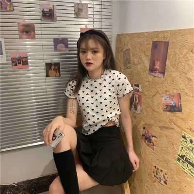 實拍實價 小愛心木耳邊清新減齡t恤上衣