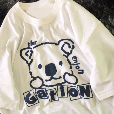 Oversized summer loose Pullover bear print short sleeve T-shirt for women