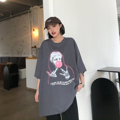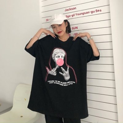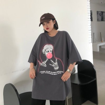 Real Hong Kong Style dark series spoof short sleeve T-shirt Korean loose print summer new men and women