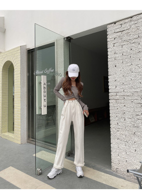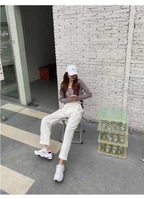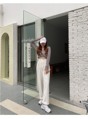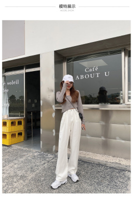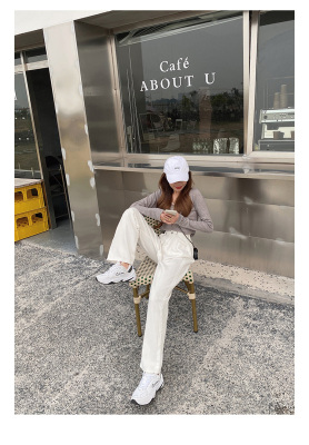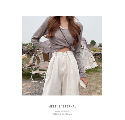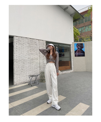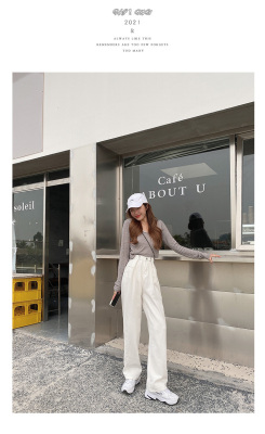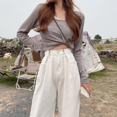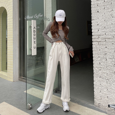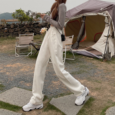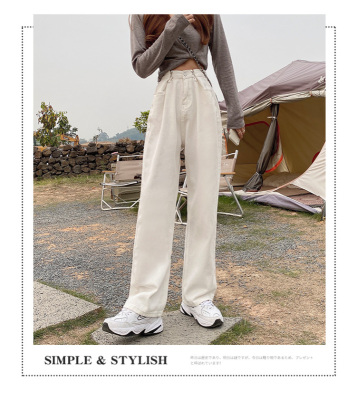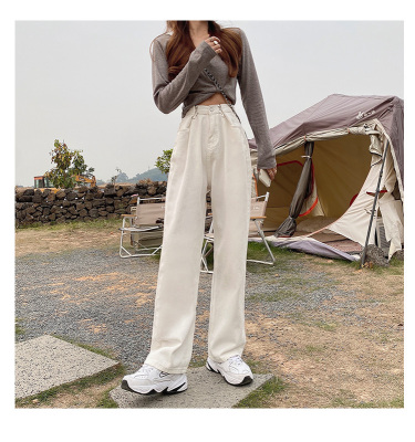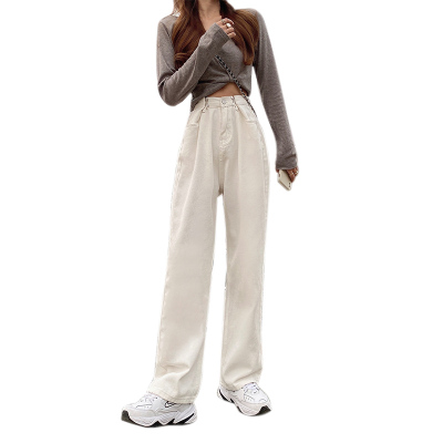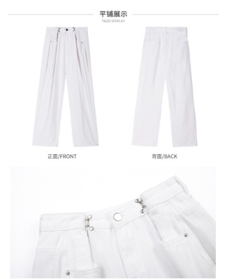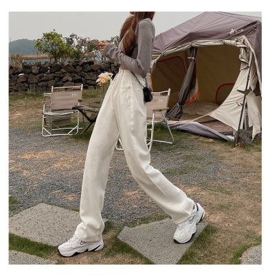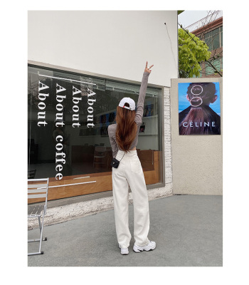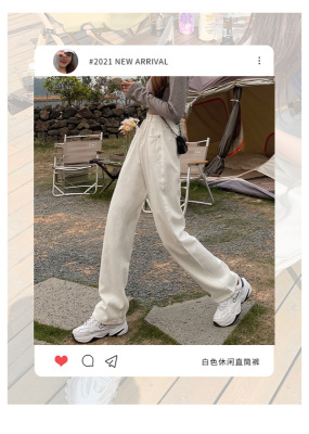 Real shot white jeans women's trendy spring new loose high waist SLIM STRAIGHT wide leg pants floor length pants