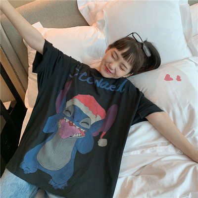 Real shot new summer Korean version ins hip hop cartoon print loose BF black T-shirt top half sleeve fashion