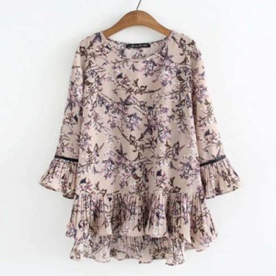 Large women's chiffon shirt spring dress fat mother show thin cover belly broken flower top loose foreign style middle-aged bottom coat woman