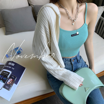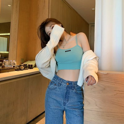 Britney Spears white small Halter vest with short French high waist and Knitted Top inside