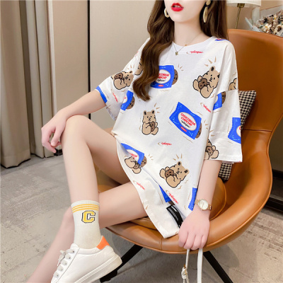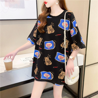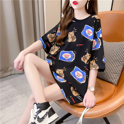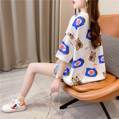 Real photo half sleeve women's clothes fashion brand medium length loose fire short sleeve T-shirt