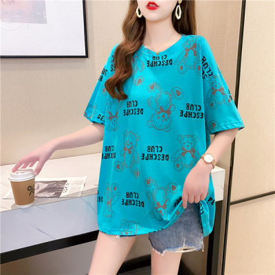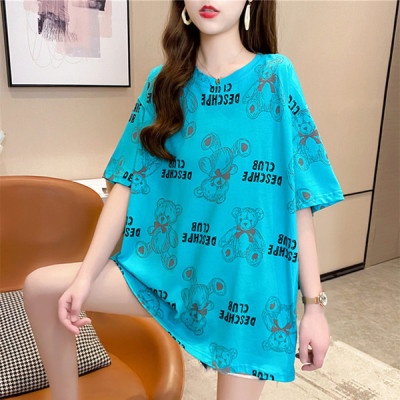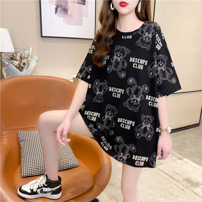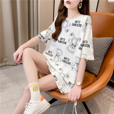 Photo taken: fashion trend of new mid long printed short sleeve Korean super hot top