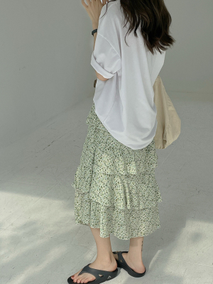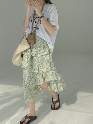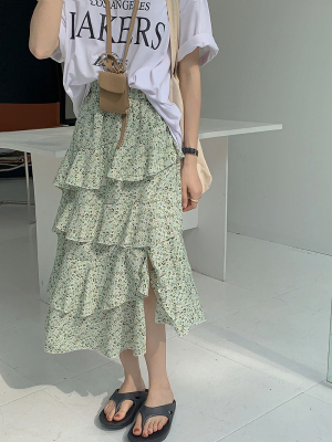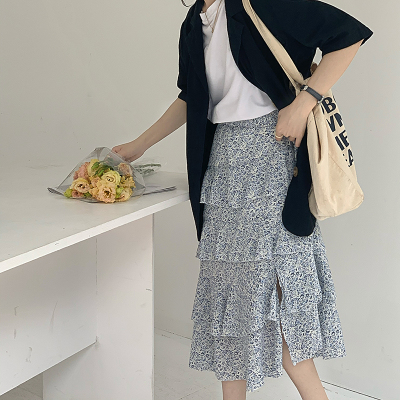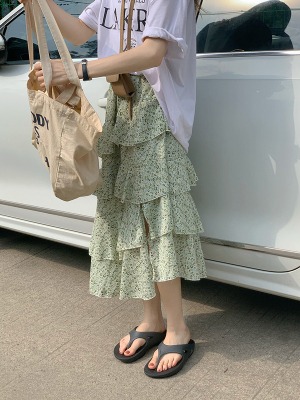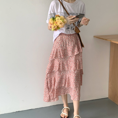 Real price and real shooting broken flower skirt, elastic high waist design, cake skirt