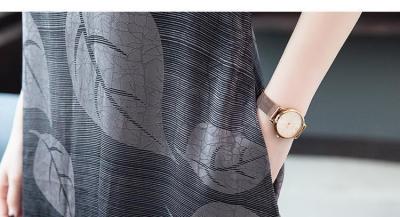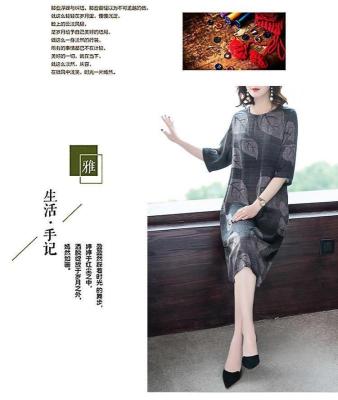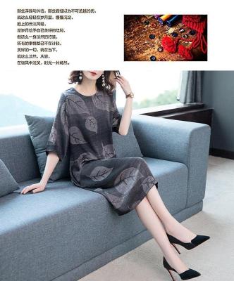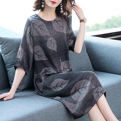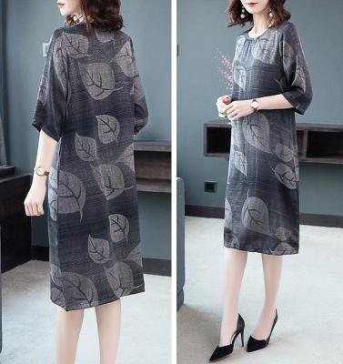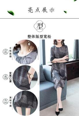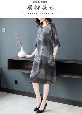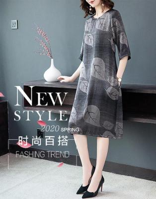 Lady's dress with loose print and oversized belly covering