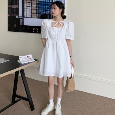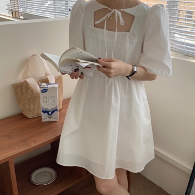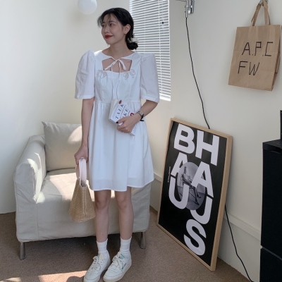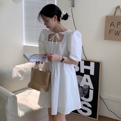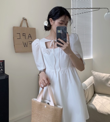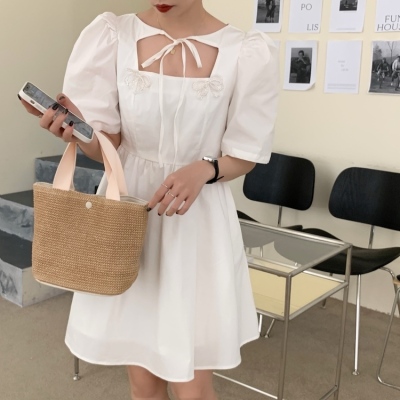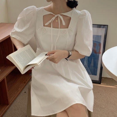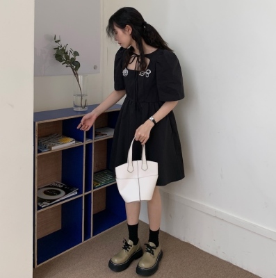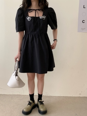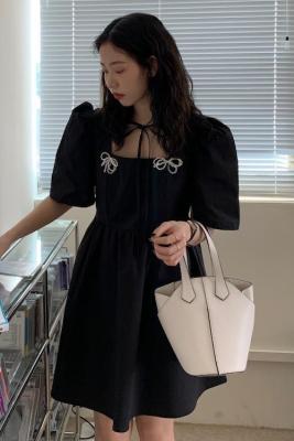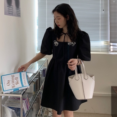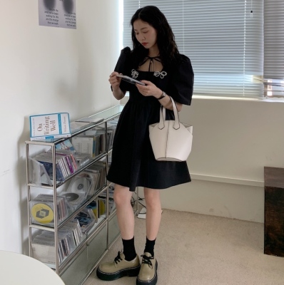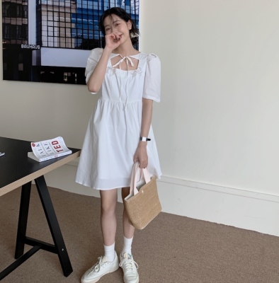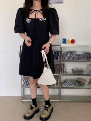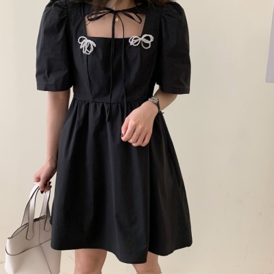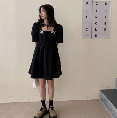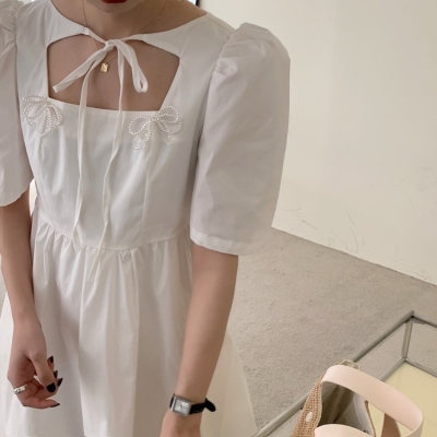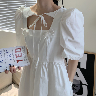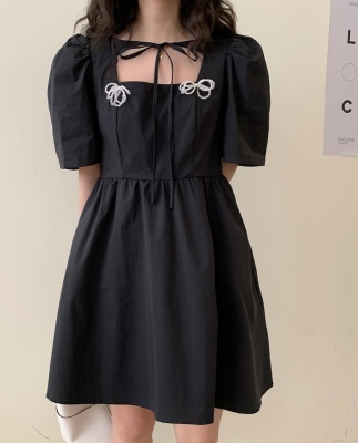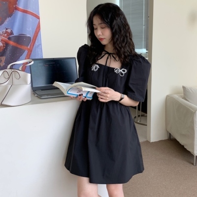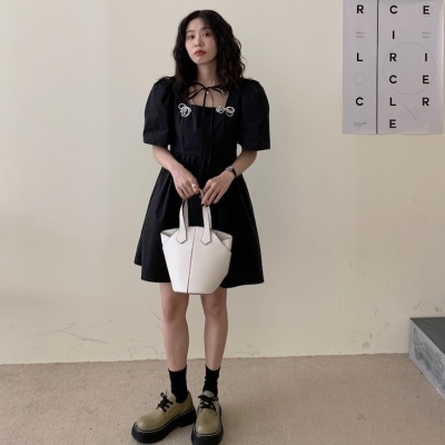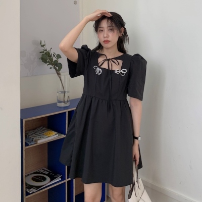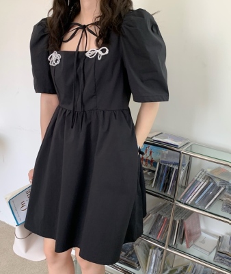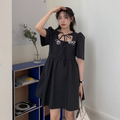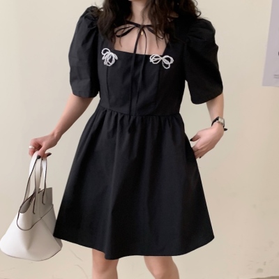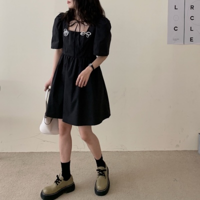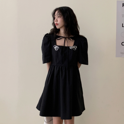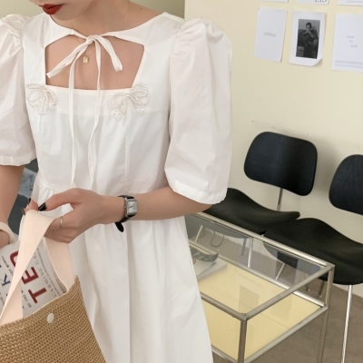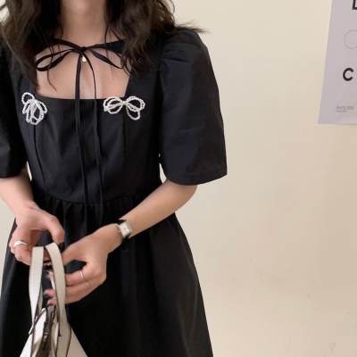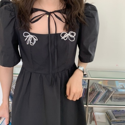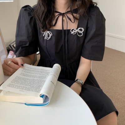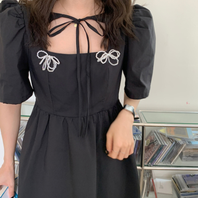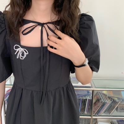 實拍 鬼馬復古旗袍改良 珍珠蝴蝶結裝飾 少女綁帶公主連衣裙