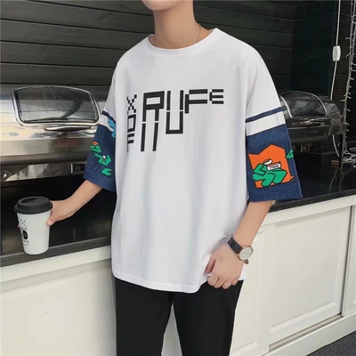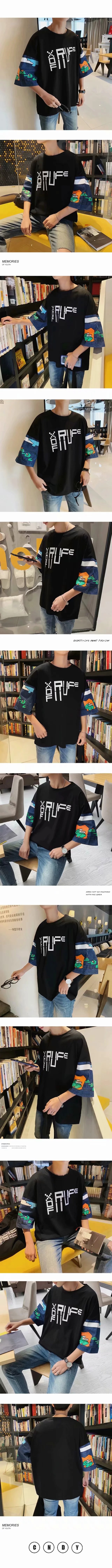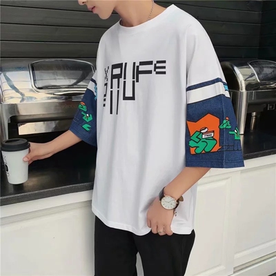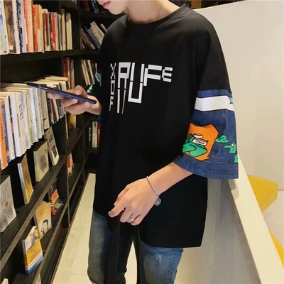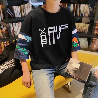 Short sleeve t-shirt men's Korean version loose student's T-shirt summer five points original night style BF couple's seven point sleeve upper garment