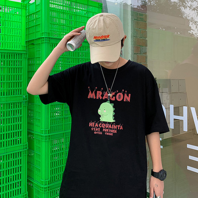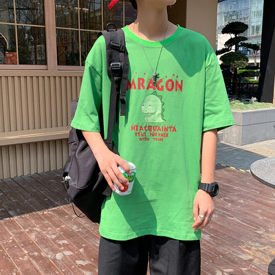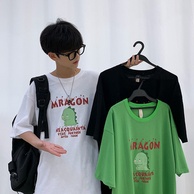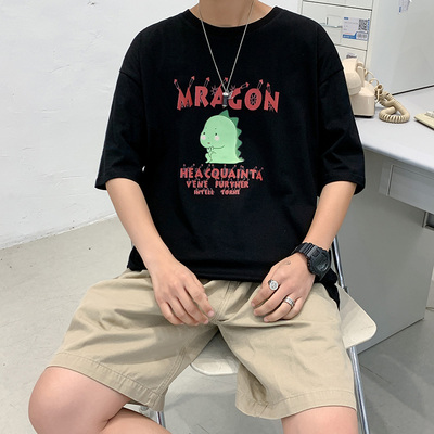 Summer trendy men's loose short sleeve t-shirt men's Hong Kong Style couple's pure cotton bottomed half sleeve T-shirt round neck half half five sleeves