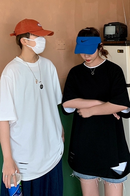 Summer short sleeve t-shirt men's loose ins Hong Kong style student casual versatile top trend hole 5-sleeve T-shirt trend