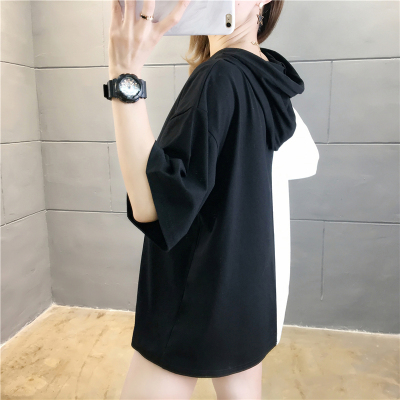 Actual 35 cotton summer new printing medium long round neck loose short sleeve T-shirt women's Korean foreign trade women's fashion