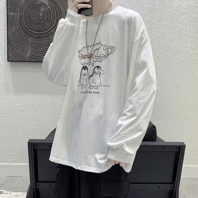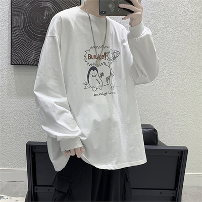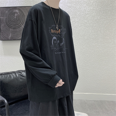 Long sleeve t-shirt men's ins fashion card cartoon print loose top clothing trend and all-round wear