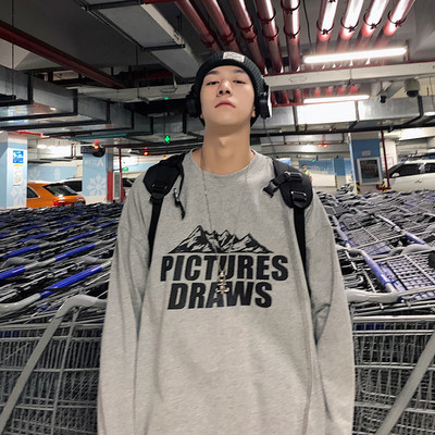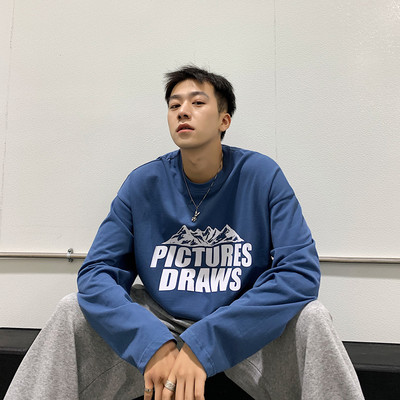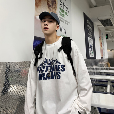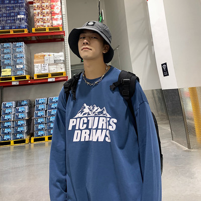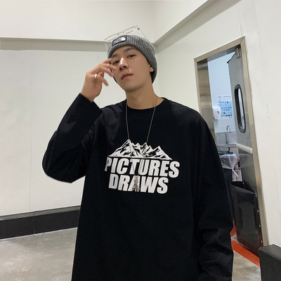 Autumn long sleeve T-shirt boys trend snow mountain print casual couple all kinds of loose retro port chic top