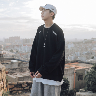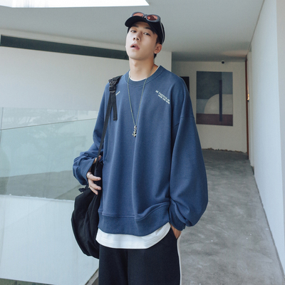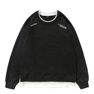 Fall 2020 new fake two piece embroidered letter sweater men's fashion round neck Pullover