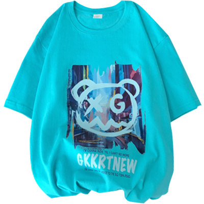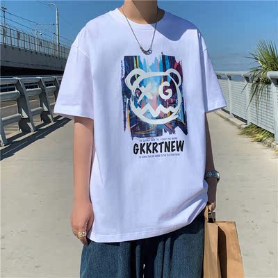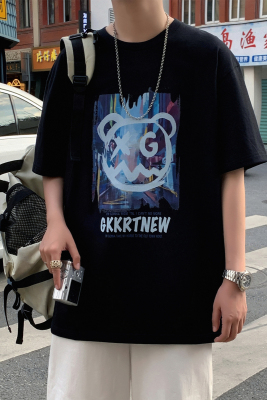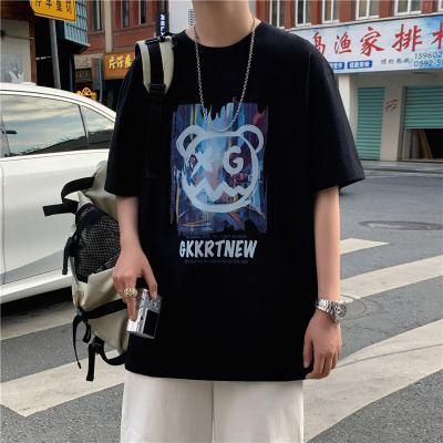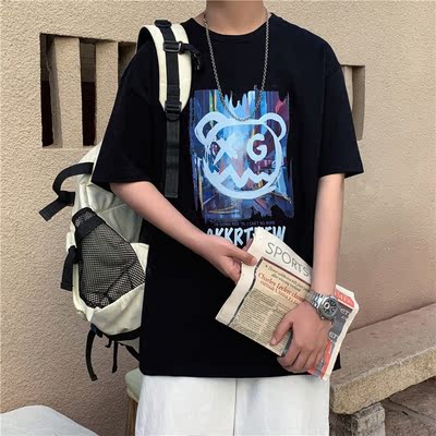 Summer short sleeve t-shirt men's fashion Hong Kong Style bear versatile 5-sleeve Korean fashion hip hop letter print half sleeve