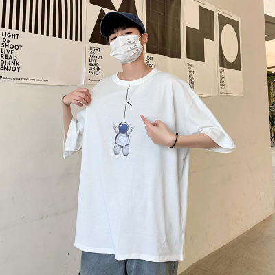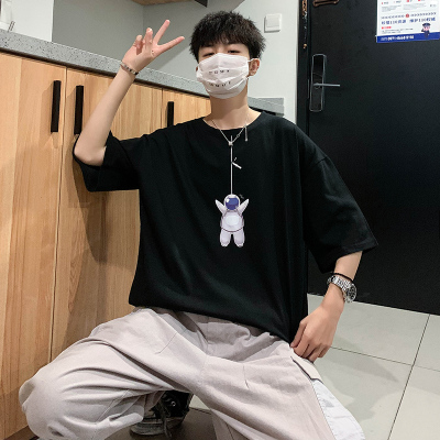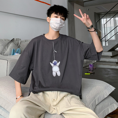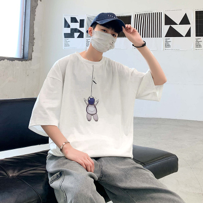 Spring and summer 5-point sleeve t-shirt men's loose and trendy Brand Hong Kong Style versatile fashion personality 5-point short sleeve cotton bottomed shirt