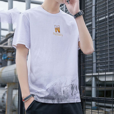 Men's short sleeve T-shirt 2021 summer new gradual change Korean loose round neck personalized T-shirt trend half sleeve