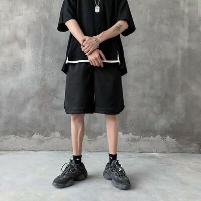 Hong Kong style retro trend men's loose sports shorts and new summer dark line casual pants