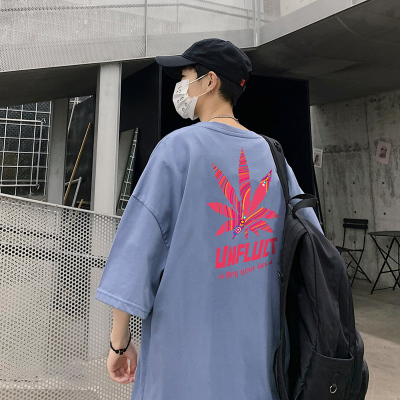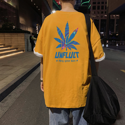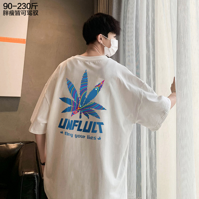 Color hemp leaf lovers short sleeve t-shirt men's trend Korean version fat plus fat size loose half sleeve T-shirt summer wear