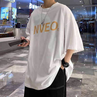 Summer 5-point-sleeve t-shirt men's loose fit Korean fashion Hong Kong Style versatile fashion ins fashion brand Harajuku 5-point short sleeve T-shirt