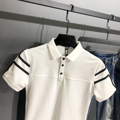Men's polo shirt color contrast embroidery youth slim fit short sleeve T-shirt Lapel slim fit half sleeve fashion Korean fashion brand handsome t