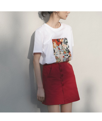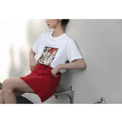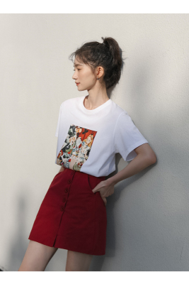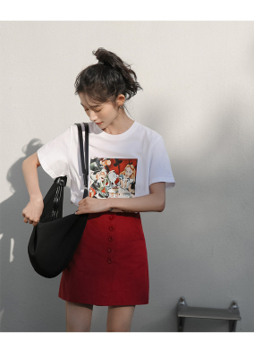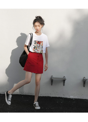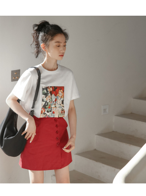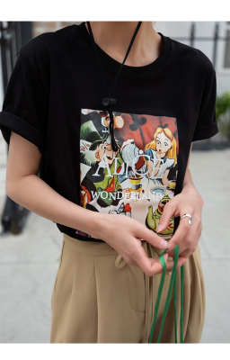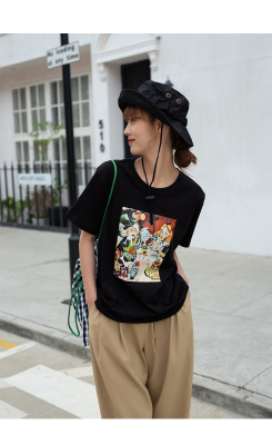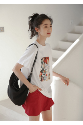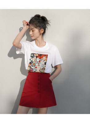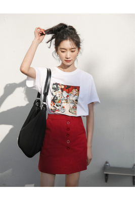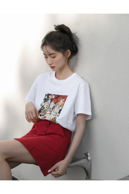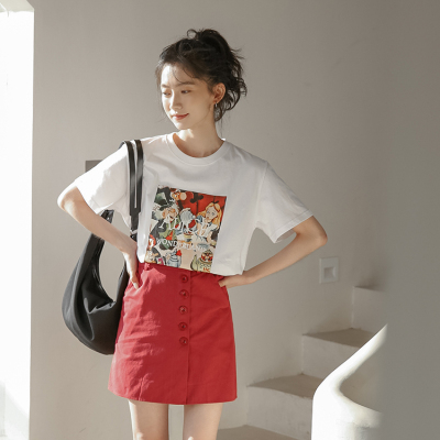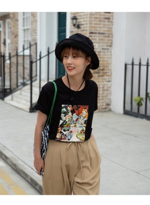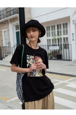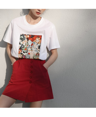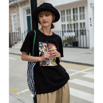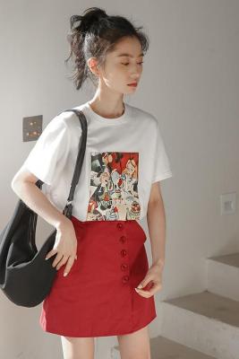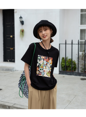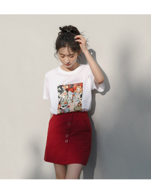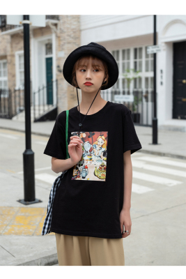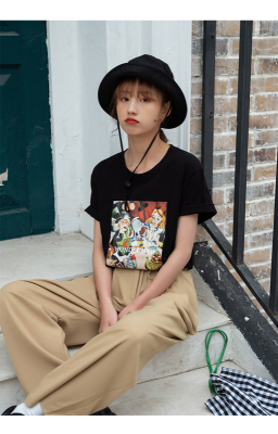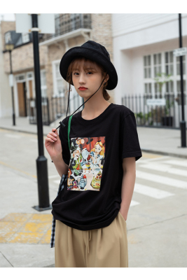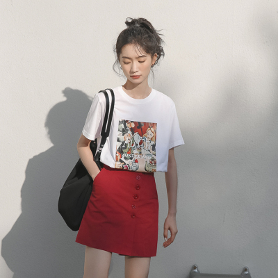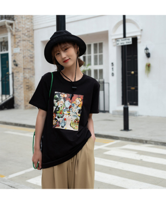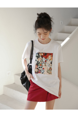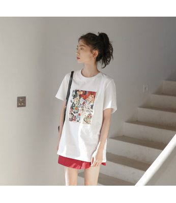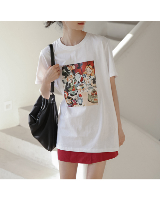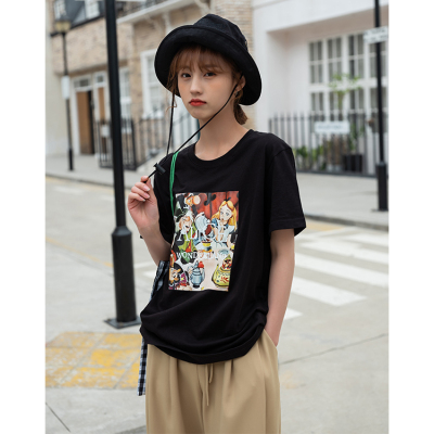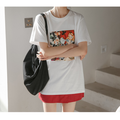 實拍2夏季新款可愛卡通印花短袖t恤ins潮寬鬆bf港風白色半身體恤