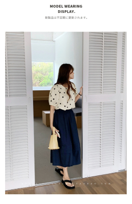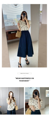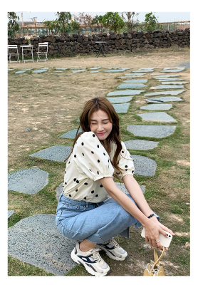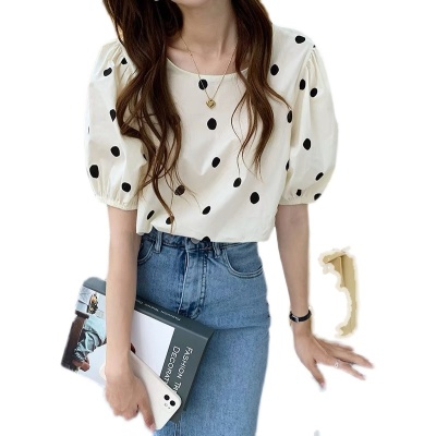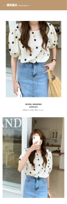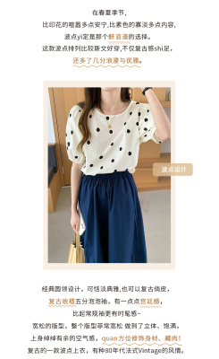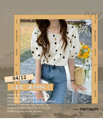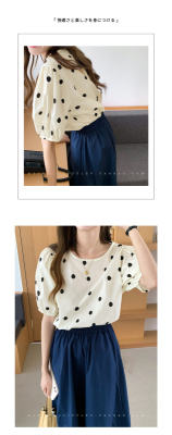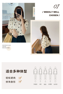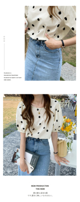 Soft and versatile short sleeve shirt women's 2021 summer new Korean wave dot top loose Round Neck Chiffon