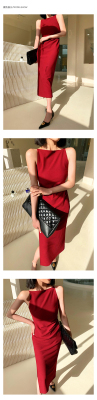 Wangxo suspender dress 2021 new spring high-end light luxury one line shoulder high-level design small crowd skirt children