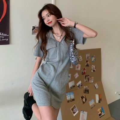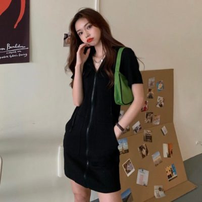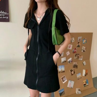 Dress new year waist show thin temperament zipper drawstring pocket sexy bag hip Hooded Dress women's summer