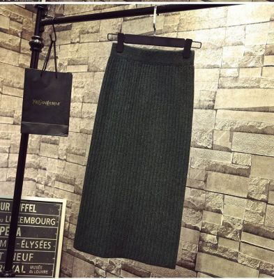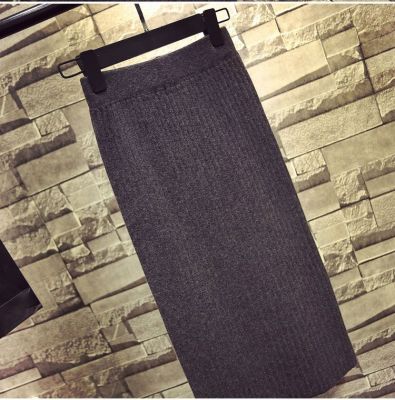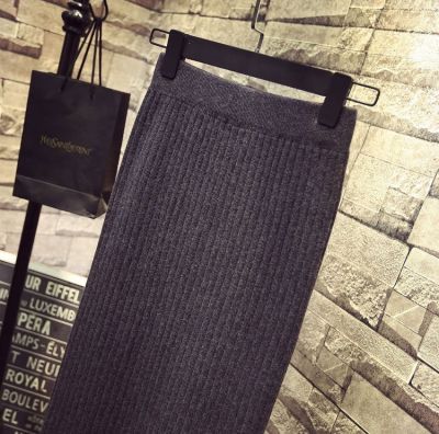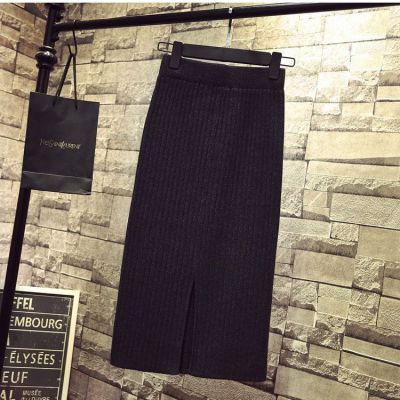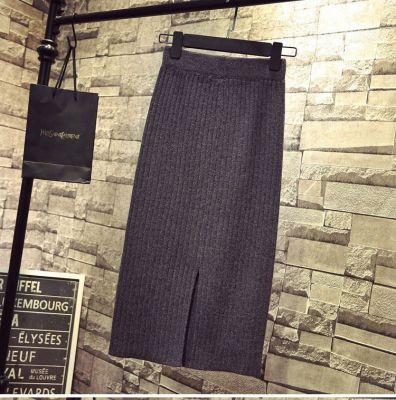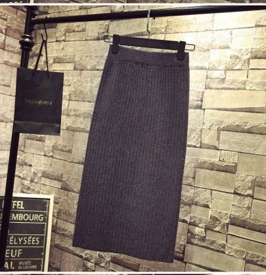 Core spun yarn split one-step skirt long skirt autumn and winter wool skirt high waist medium length knitted Hip Wrap Skirt half skirt
