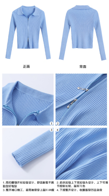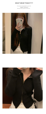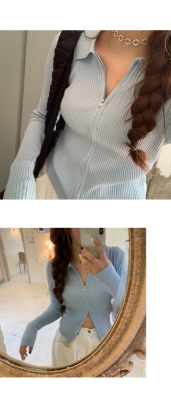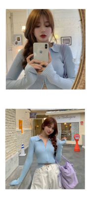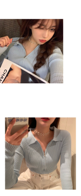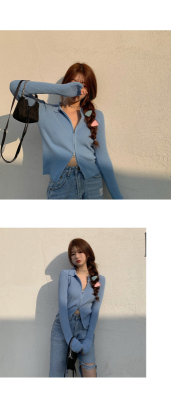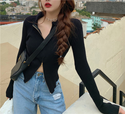 Net red short T-shirt open navel coat spring and autumn versatile long sleeve ins ultra fire zipper Korean purple top women