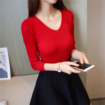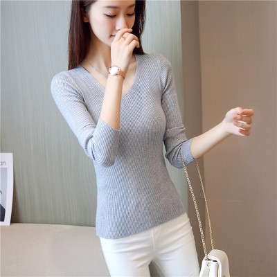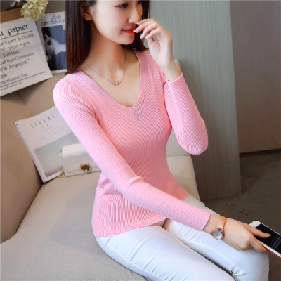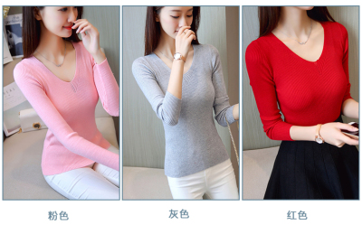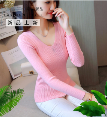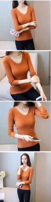 Small sweater women's tight and sweet little fragrance jacket Pullover chicken heart collar solid color bottom sweater