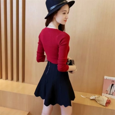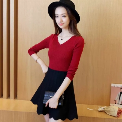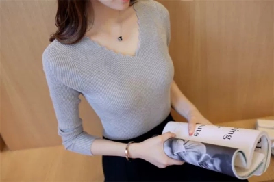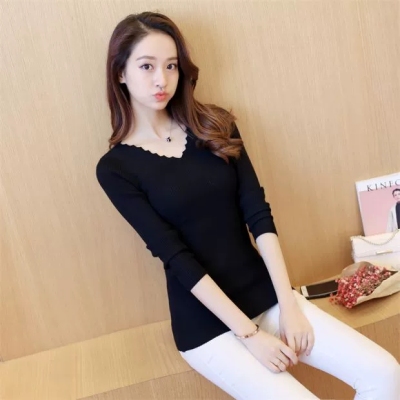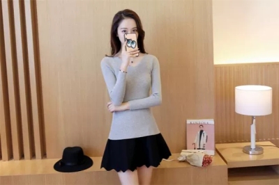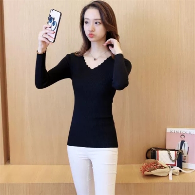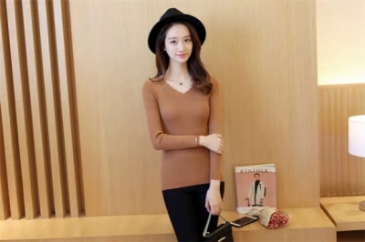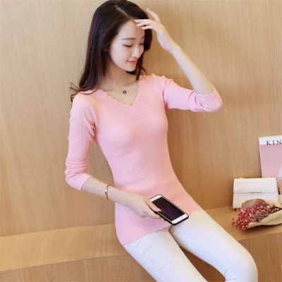 New all-around solid color tight knit sweater for autumn and winter 2020