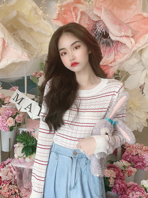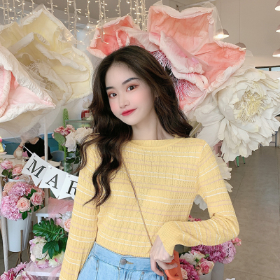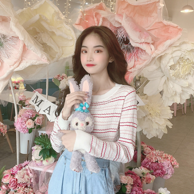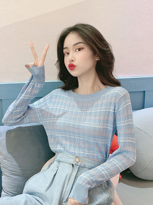 Thin stripe long sleeve T-shirt summer 2020 new Korean version of net red slim bottoming top top women's fashion