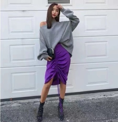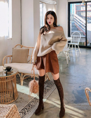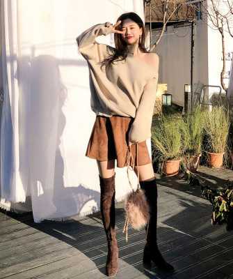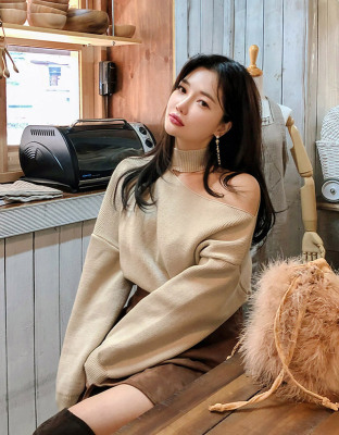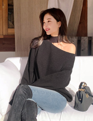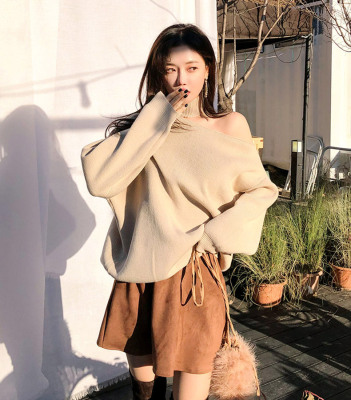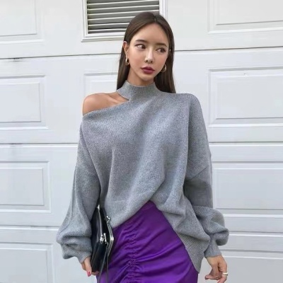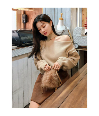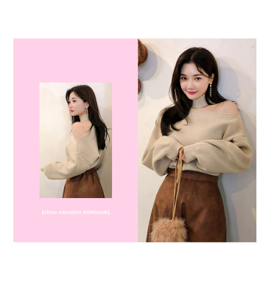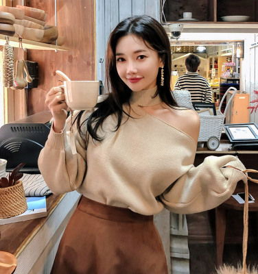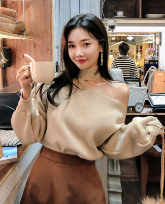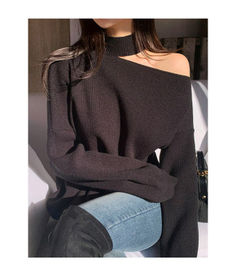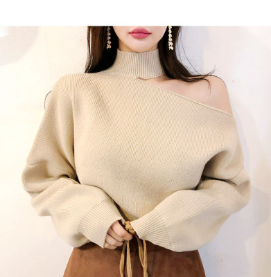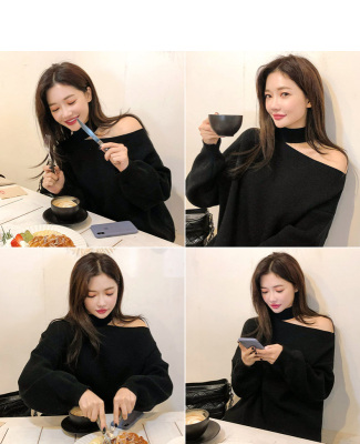 Korean off the shoulder hanging neck sweater knitwear autumn winter new irregular careful machine net red temperament top