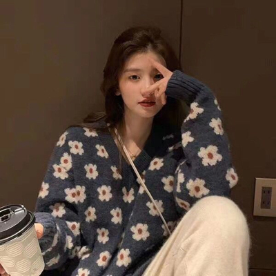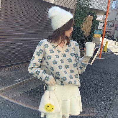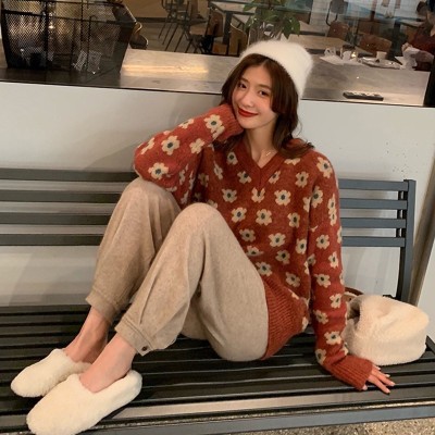 Large net red V-neck soft and sweet sweater for women loose wear retro 2020 new women's Pullover