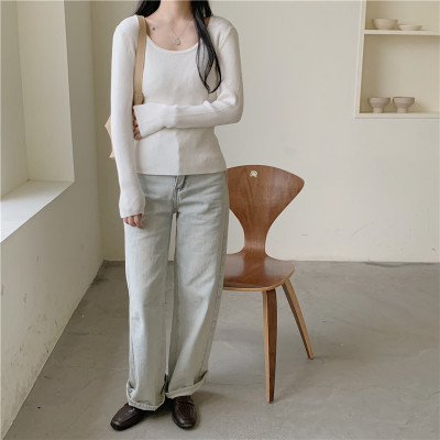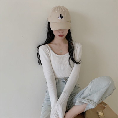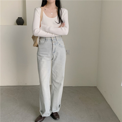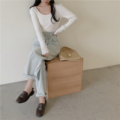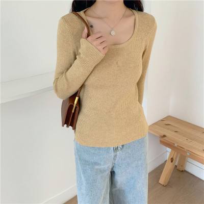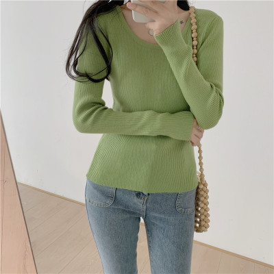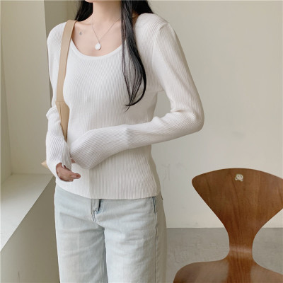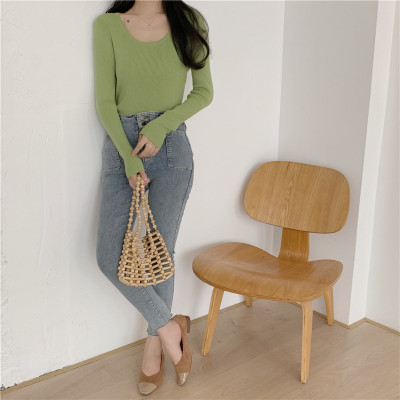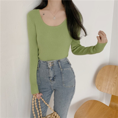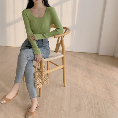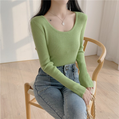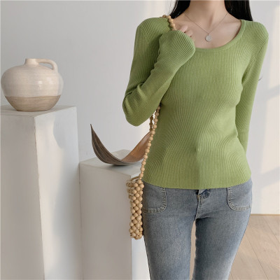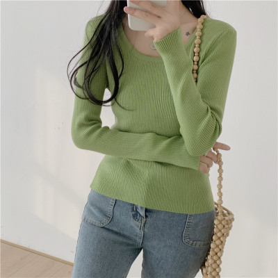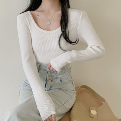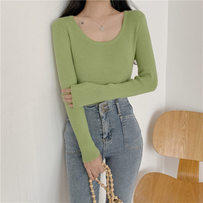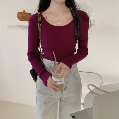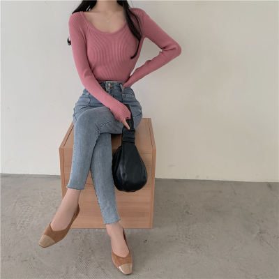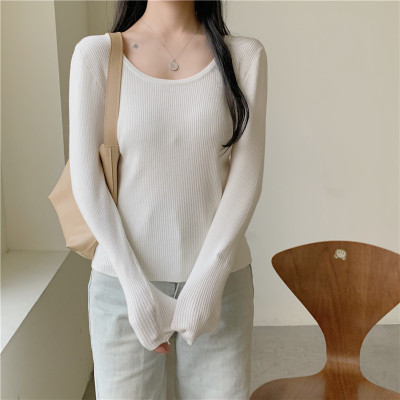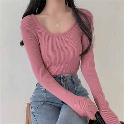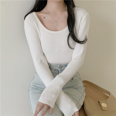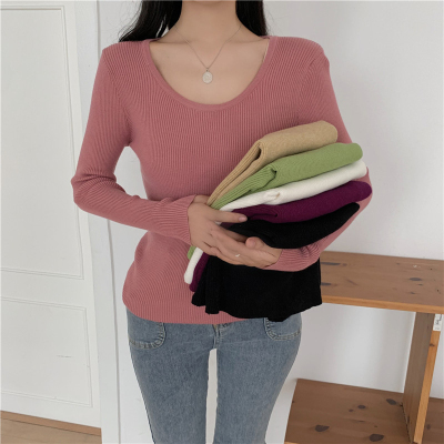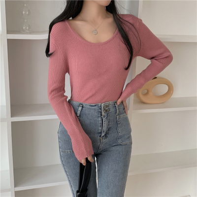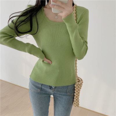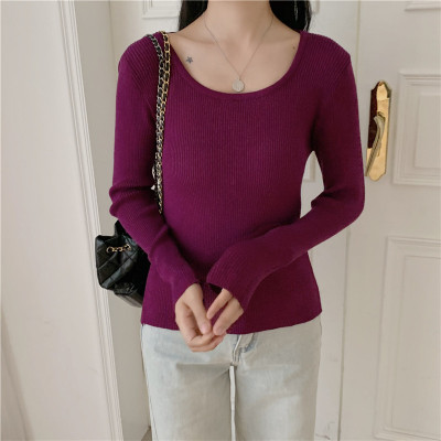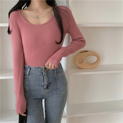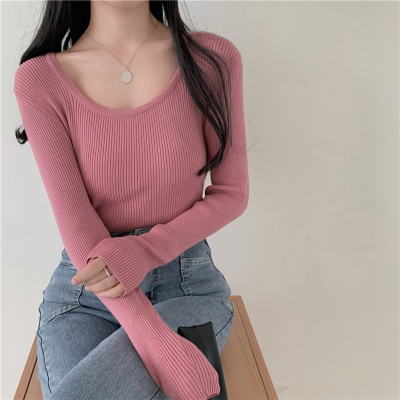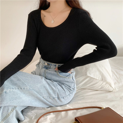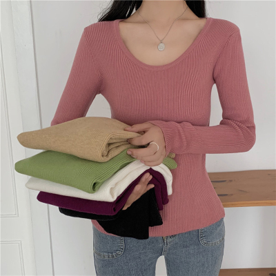 實拍~韓版圓領長袖針織衫修身百搭秋冬套頭打底衫女