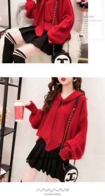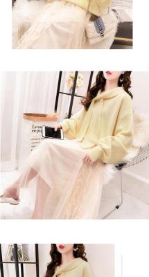 Core spun yarn three yarns fall 2020 loose lace up sweater women's Pullover T-Shirt Top with short style