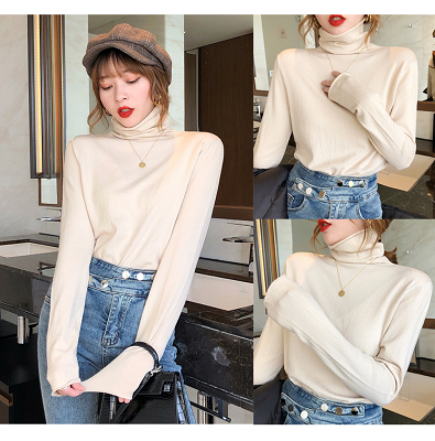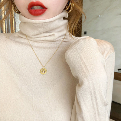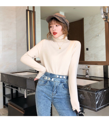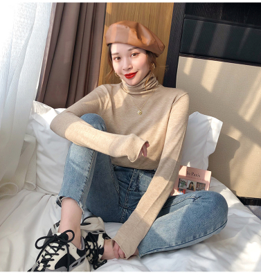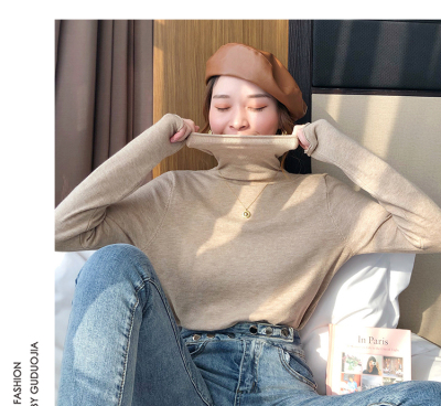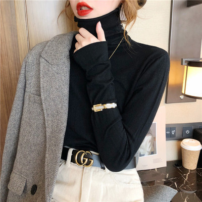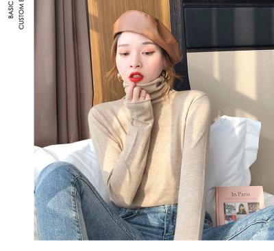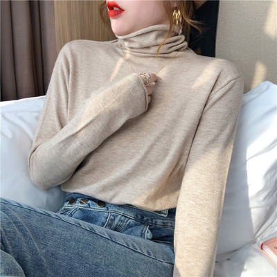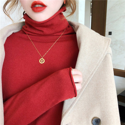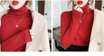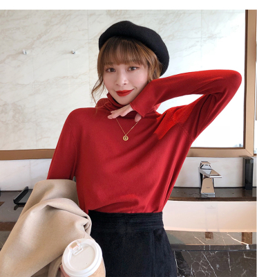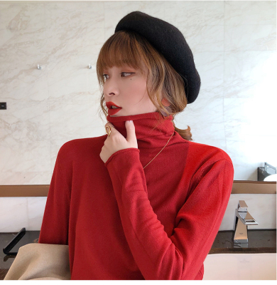 Red high neck sweater women's 2020 new versatile retro Knitted Top slim thin autumn and winter underlay