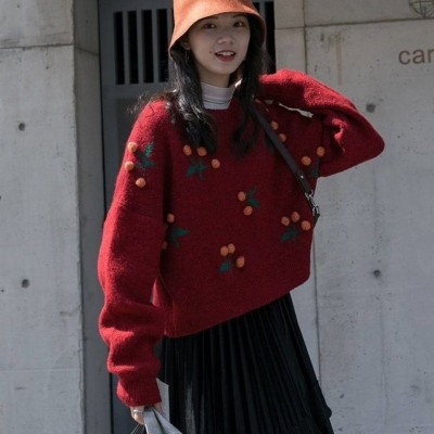 Sydney custom knock cute! Sweet cherry girl, junior round neck Knitted Top