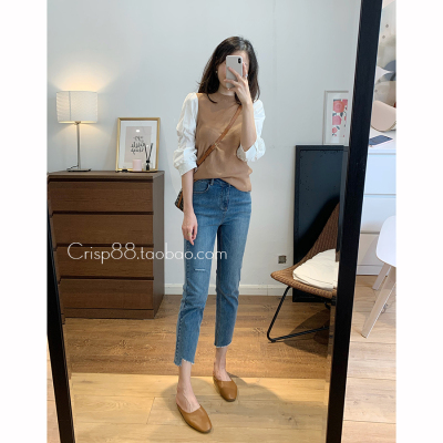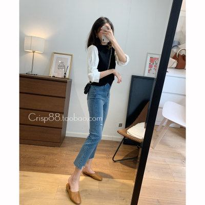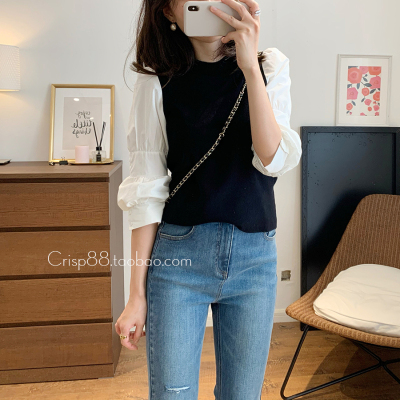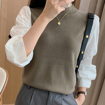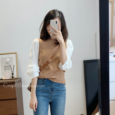 Foreign style layering autumn new style antique fake two piece Lantern Sleeve soft T-shirt sweater splicing Long Sleeve Shirt