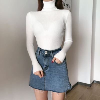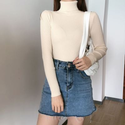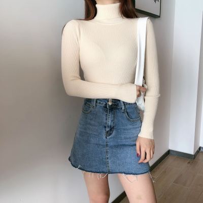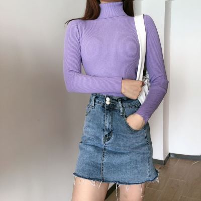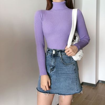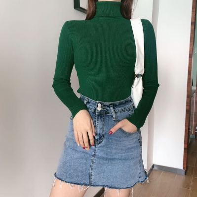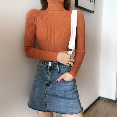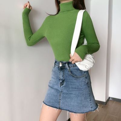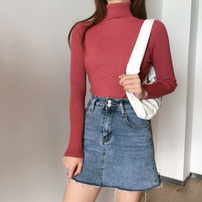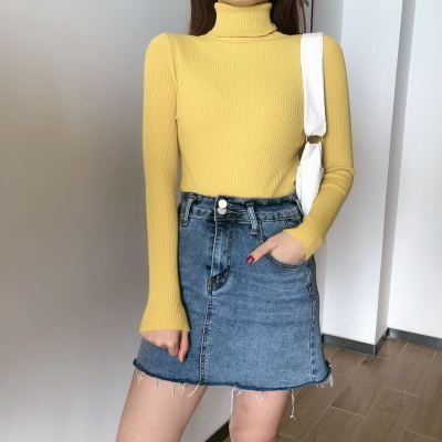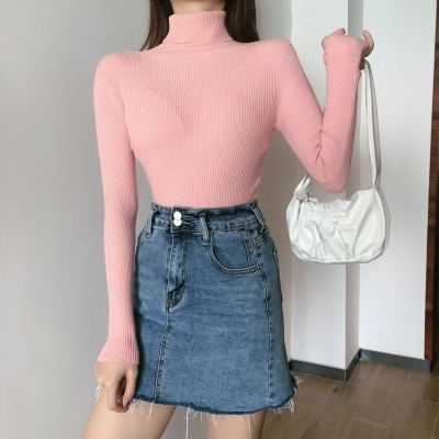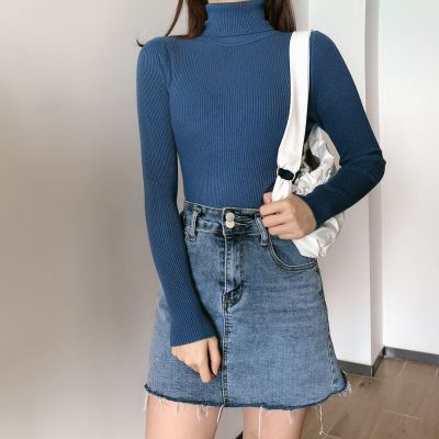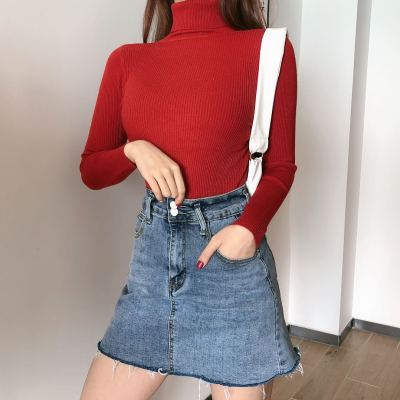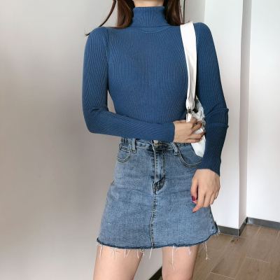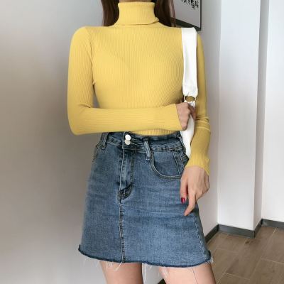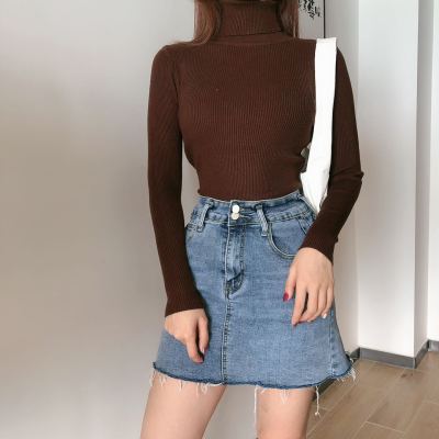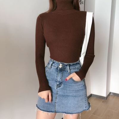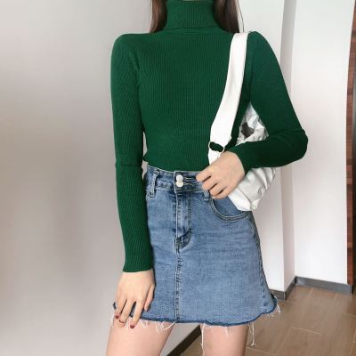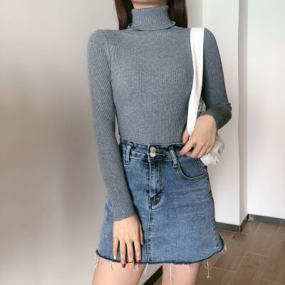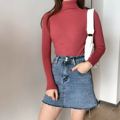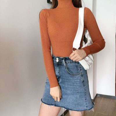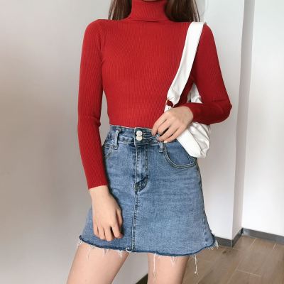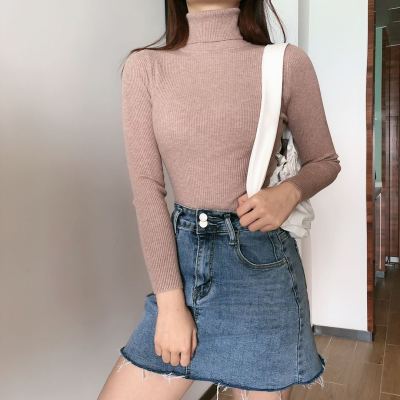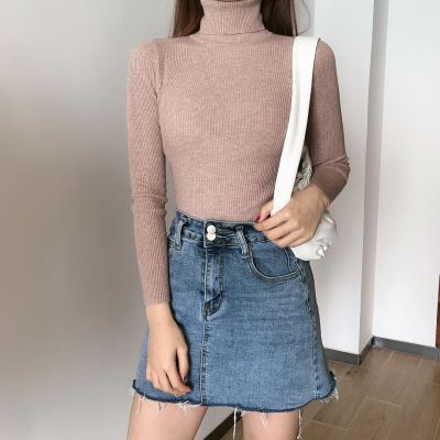 Real shot autumn dress new style all-in-one solid color slim fit look slim Pullover high neck warm long sleeve knitted sweater women's wear